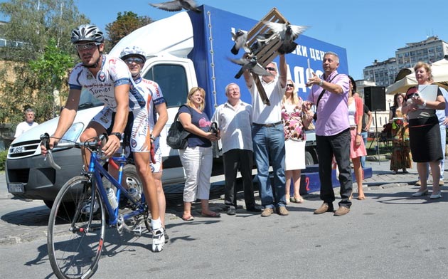 Deseti jubilarni tandem biciklistički maraton “Kragujevac-Mostar 2013“ koji voze biciklisti Paraolimpijske akademije “Junior“ i BK Radnički krenuo je juče put Mostara. Start trke sa trga kod Krsta, oko 10:30 časova, označio je Jovan Pavlović-Bojadžić, pomoćnik gradonačelnika za sport, simboličnim puštanjem jata od deset golubova. Startu trke prisustvovala je i Ivanka Bulić, prva sekretarka ambasade Bosne i Hercegovine u Srbiji. Startu tandem biciklističkog maratona “Kragujevac-Mostar 2013“ prethodila je mini biciklistička trka koju su na skveru kod Krsta vozili mališani Ustanove za decu “Nada Naumović“.