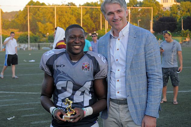 Naredna dva poseda materijalizovana su fild golom na obe strane (7:3), da bi zatim odlična defanzivna linija Veprova koja je sve vreme vršila ogroman pritisak na Uribea, isforsirala fambl, koji je pokupio Vladimir Radenović na pet jardi od end zone, a Beci nije bilo teško da uz dobre blokove ofanzivnih linijaša netaknut istrči preostalu deonicu – 10:10.